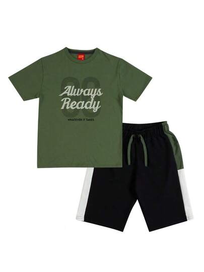 Kyly Boy's Set Cotton T-Shirt With Green Front Print, Bermuda Shorts, And Light Black Sweatshirt - 彩色 - 查看 1