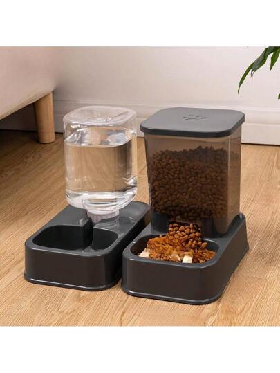 宠物喂食器和饮水器套装,1200ml 自动饮水器和 0.75kg 喂食器,可单独使用,自动补充,易于清洁,适用于猫、狗、兔子、松鼠等中小型宠物 - 深灰色 - 查看 1