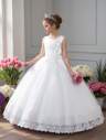 少女长款纯色蕾丝薄纱缎面优雅正式礼服,适合出席舞会和盛会,不含头饰