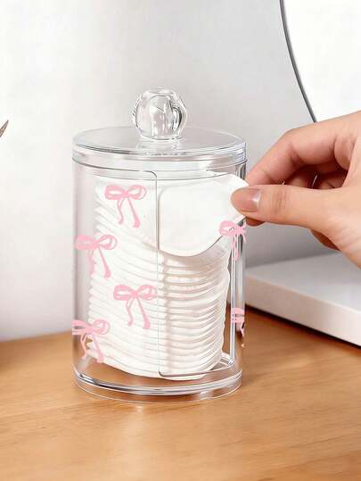 粉色蝴蝶结透明化妆品收纳盒,大容量圆柱形储物盒,棉签收纳盒,卸妆棉片分发盒,带盖卸妆棉片收纳盒,透明化妆品收纳盒,浴室棉签卸妆棉片收纳盒,可水洗易清洁。适用于收纳眼贴、美妆蛋和清洁海绵。桌面收纳盒。 - 彩色 - 查看 10