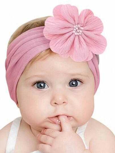 粉色尼龍花寬邊無痕花式嬰兒頭箍 - 粉色 - 查看 1