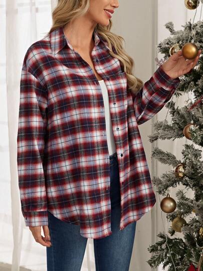 EMERY ROSE 格紋印花落肩袖襯衫 - 彩色 - 查看 1