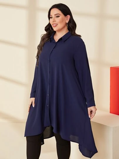 Mulvari 大碼不對稱下擺前紐扣襯衫 - 藏蓝色 - 查看 1