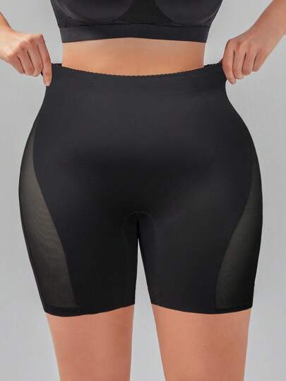 大碼網紗拼接塑形短褲 - 黑色 - 查看 1