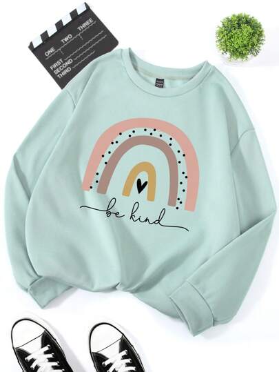 INAWLY 字母爱心印花保暖套头衫,适合冬季毕业、返校、毕业典礼、教师节等场合,女士款,秋季返校季必备 - 薄荷綠 - 查看 6