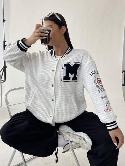 Flirla 休閒字母 條紋大碼夾克 - 白色 - 查看 1
