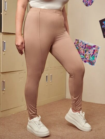 大碼接縫細節緊身打底褲 - 杏色 - 查看 1