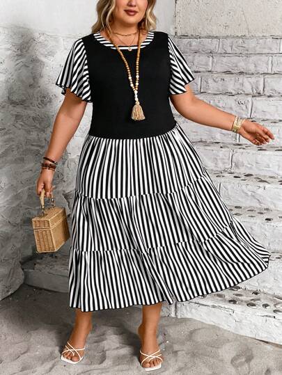 EMERY ROSE 大码夏季时尚二合一条纹字母印花连衣裙 - 彩色 - 查看 1