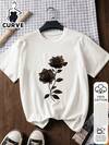 2026玫瑰印花加大码女式休闲纯棉短袖上衣,面料柔软,纯棉材质,适合户外穿着,东方美学街头风T恤 - 100%优质纯棉短袖T恤,2026返校季穿搭灵感,返校必备单品,开学第一天穿搭,2026返校季时尚,学院风服装