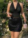 Dazy Plus 纯色半纽扣领合身弹力黑色短款吊带背心
