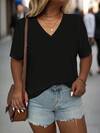 EMERY ROSE 休闲彩色爱心印花V领短袖T恤,适合大码女装,夏季、返校、返校节、夜间外出等场合,爱心图案V领上衣,女士假日/春季花卉/度假/春日必备单品