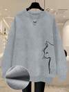 Calvaya 女士小猫印花保暖厚实圆领运动衫
