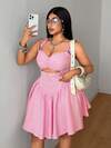 GlowEve CURVE 大码女式纯色不对称下摆长袖上衣和吊带连衣裙优雅两件套