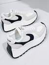 秋冬女士运动坡跟运动鞋,拼色字母贴片装饰系带运动鞋