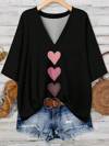 SHEIN 大码宽松心形刺绣女式 T 恤