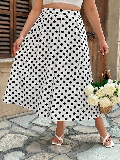 Flirla 大码女式优雅波尔卡圆点裙,适合通勤 - 白色 - 查看 1