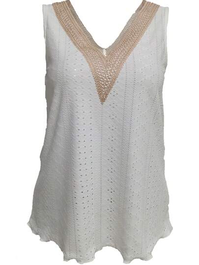 大码女式时尚休闲无袖上衣,适合春夏季节穿着 - 白色 - 查看 4