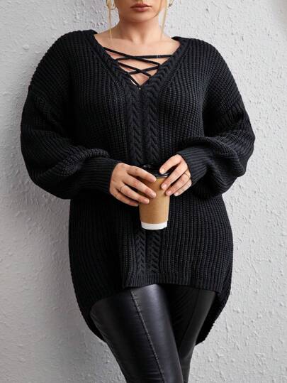 SHEIN LUNE 大尺碼女款純色套頭毛衣 - 黑色 - 查看 1