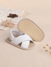 1 双男童纯色交叉 PU 钩环平底设计休闲凉鞋,适合室内、夏季