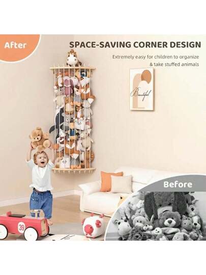 毛绒娃娃收纳袋,毛绒娃娃吊床网 - 角落毛绒动物园,娃娃收纳整理架,毛绒娃娃收纳架,适合幼儿男孩女孩,篮子收纳,整理架,房间装饰,礼品篮,篮子,卧室收纳,储物篮,楼梯篮,复活节篮,木篮,可爱礼品篮 - 彩色 - 查看 1