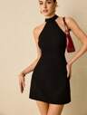 Poéselle 女士优雅纯色无袖迷你连衣裙,通勤风格