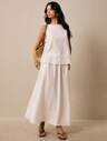 Poéselle 100%纯棉女士纯色简约日常长裤,饰有眼睛图案刺绣,波西米亚田园风美学,休闲风格,宽松白色裤腿