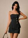 Poéselle 女士两件套西装黑色上衣和优雅百褶裙,度假套装,优雅女士套装,老钱风格女士,度假两件套,女士夏季服装