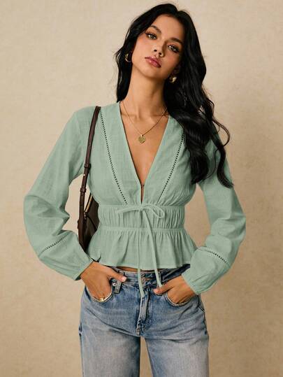Poéselle 女士日常休闲衬衫 - 薄荷綠 - 查看 1