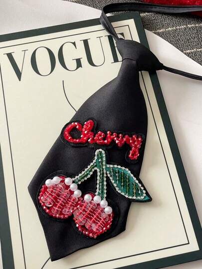 涤纶心形领带夹,黑色心形喇叭和珍珠水钻装饰领带夹,闪亮项链设计,适合派对、宴会、工作场所 - 紅色大櫻桃 - 查看 1