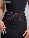 Hershine 1条镶钻花朵设计腰链,银色,奢华简约性感身体链,适合搭配连衣裙、正式场合、派对、日常穿着,是送给女性、母亲、女友、生日、情人节、母亲节的礼物(有加大码可选),也适合暑假、秋季、万圣节等场合。
