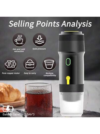 便携式全自动意式浓缩咖啡胶囊咖啡机 适用于大、小胶囊咖啡粉电动咖啡机 - 黑色 - 查看 1