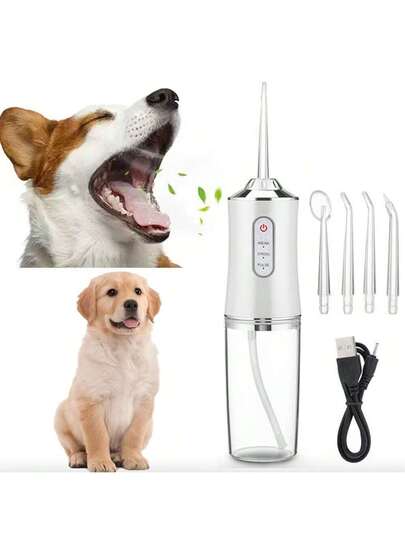 便携式宠物牙齿清洁套装,USB 充电,4 个喷嘴 360° 旋转 + 3 种模式,男女牙龈护理,猫/狗牙齿清洁,宠物牙科冲洗器 - 彩色 - 查看 1