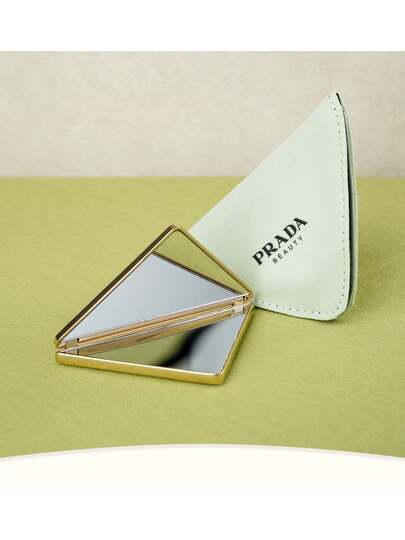 Prada BEAUTY 玫瑰金金属框三角形化妆镜,带刻字logo,附赠同款收纳袋 - 銀色 - 查看 1