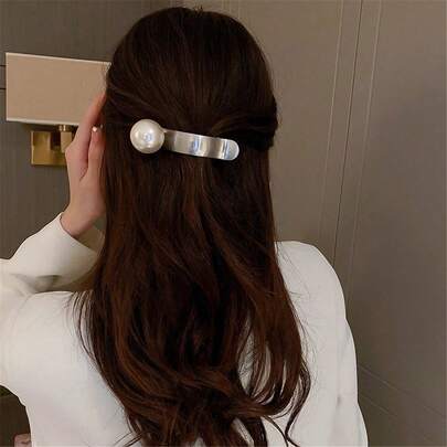 高级珍珠发夹,时尚优雅,适合刘海,简约复古金属风格女士发饰 - 彩色 - 查看 1