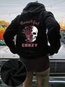 女士日常骷髅手破碎心形图案拉链连帽长袖外套,休闲春夏秋季长袖上衣,万圣节外出上衣,女士度假装,黑色长袖上衣,可爱上衣,露脐上衣,女士上衣