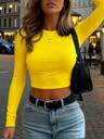 2件装纯色修身休闲短款上衣,休闲长袖圆领短款上衣,适合外出穿着,女士秋冬T恤