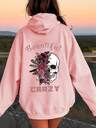 大码女式日常连帽长袖卫衣,白色骷髅头搭配深粉色玫瑰羽毛,粉色字母印有“Beautiful”和“CRAZY”字样,休闲百搭,适合春夏秋季穿着。这款大码女式长袖连帽卫衣,也是感恩节外出、度假等场合的理想之选。