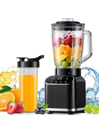 Professional Blender For Smoothies, 1200 Peak Watts Countertop Juicer, 5 Functions, 52 Oz Glass Jar & 24 Oz To-Go Cup Combo, Blenders For Smoothies, Ice And Frozen Fruit, Self-Cleaning, Black.