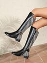 女士时尚过膝长靴,黑色侧拉链百搭高筒靴,圆头粗跟长筒舒适冬靴,女士马术靴,派对靴