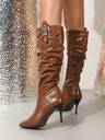 女士时尚中筒靴,棕色金属扣装饰侧拉链开合,百搭高筒靴,圆头粗跟,适合秋冬,及膝靴