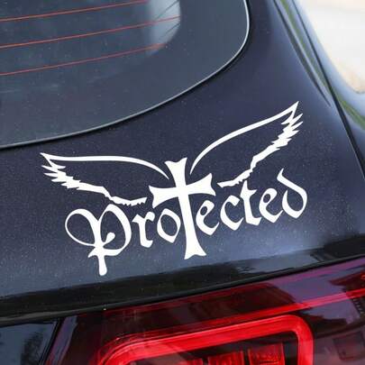 耶稣翅膀和十字架卡通宗教设计自粘光面汽车贴纸 - 防水耐用摩托车后窗贴纸,适用于塑料/玻璃金属表面。高品质创意信仰装饰乙烯基贴纸,防水,车辆主题装饰品,信仰主题装饰,装饰乙烯基贴纸,高品质贴纸,持久粘合剂。