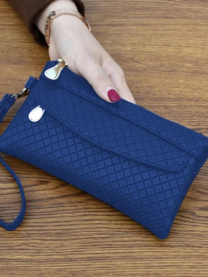 PU 皮革女士手拿包 女士手机袋 女式手机钱包 校园用品 教师礼物 返校女士钱包 钱包 长款钱包 腕包钱包 - 寶藍色 - 查看 1