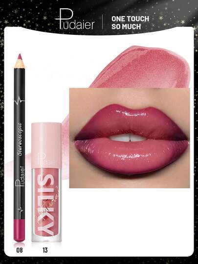 Pudaier 二合一唇部套装:滋养唇线笔和唇彩 | 持久不晕染,通用色号 | 理想的情人节礼物 - 08+13 - 查看 1
