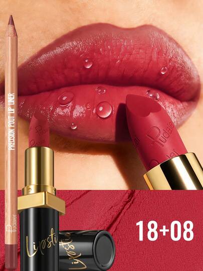 Pudaier 2支/套唇线笔和哑光唇膏套装,顺滑持久防水,勾勒完美唇线,适合日常使用和节日送礼。