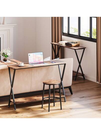 Narrow Console Table, Small Entryway Table, 2-Tier Display Table With Shelves, Sofa Table With Metal And MDF Behind The Coffee Table For The Living Room, 105 X 81 X 30 Cm - 鏽棕色 - 查看 6