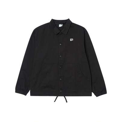 Puma 男士轻便休闲针织外套,翻领纽扣设计,多功能户外防风外套,春秋季 - 黑色 - 查看 1