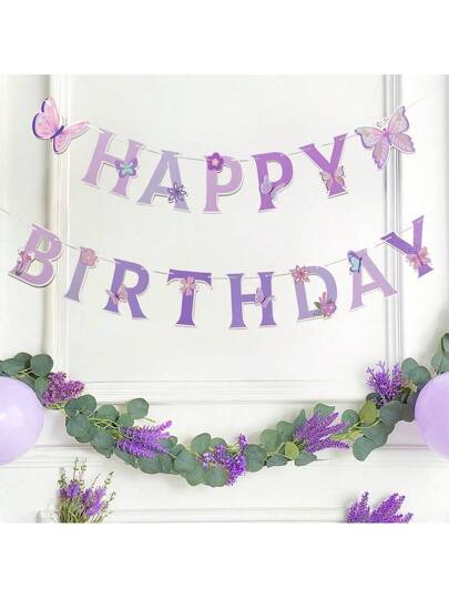 紫色蝴蝶横幅纸质吊旗生日快乐横幅吊坠适用于蝴蝶生日派对装饰用品、家居装饰墙面装饰、房间装饰、生日礼物、圣诞节 - 紫色 - 查看 5