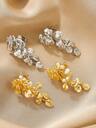 2入/對 精美鑽石和仿珍珠裝飾耳夾,女士時尚中空無孔耳環