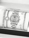 6 件,女士手表,华丽款式女士石英表,配合金钢表带,水钻套装,三眼罗马和合金金首饰套装,心形水钻,适合晚会情人节