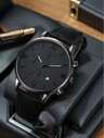 1 件男士黑色 PU 皮革表带休闲复古简约刻度带日历功能表盘石英手表适合日常佩戴或节日礼物
